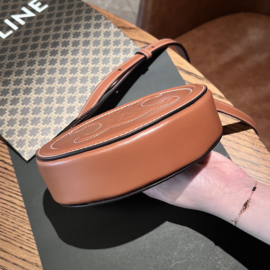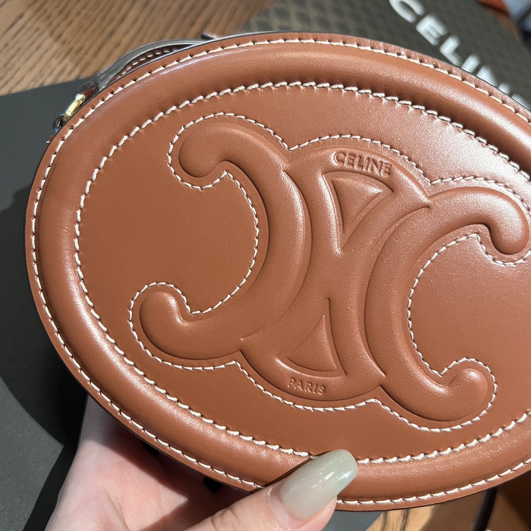 Celine TRIOMPHE思琳斜挎椭圆形钱包黄褐色10I703DPQ.04LU