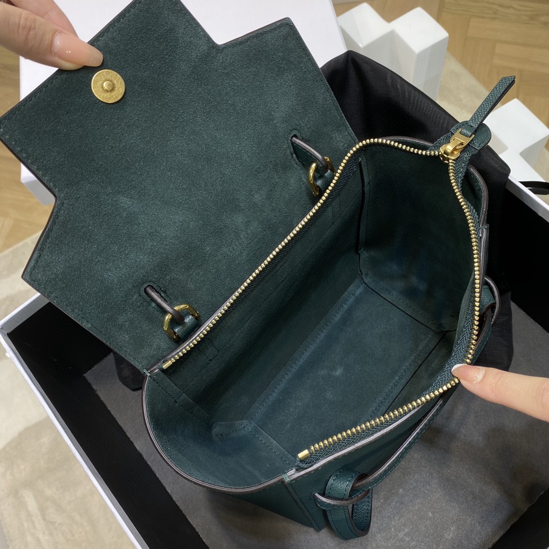 Japan Celine BELT NANO思琳手袋亚马逊绿189003ZVA.31AN。BELT NANO粒面牛皮革手袋。亚马逊绿。BELT NANO刺绣手袋,附1个皮革手柄,1条可拆卸及可调节肩带。这款手袋具备两种闭合方式:顶部翻盖和拉链。