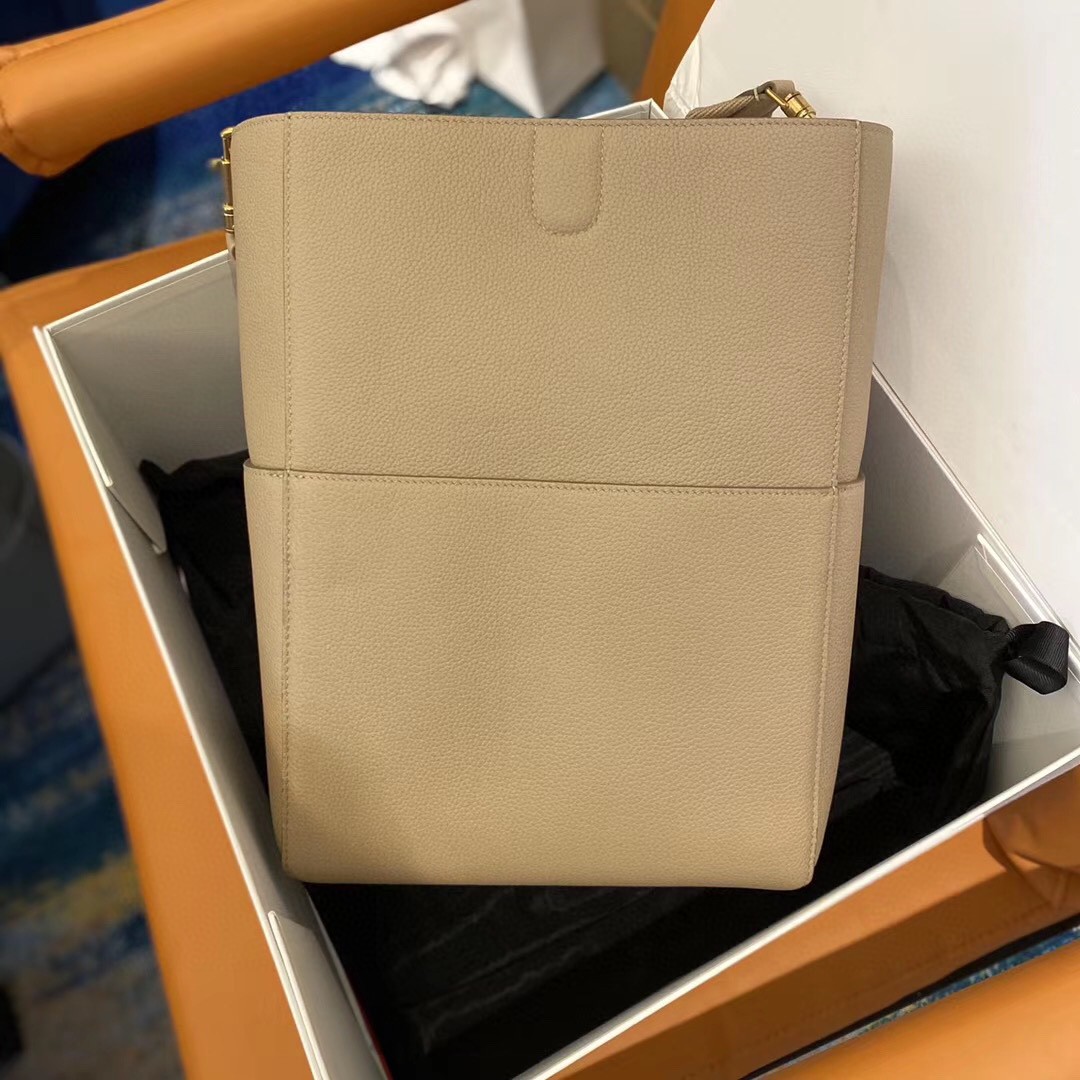 Celine SANGLE BUCKET思琳水桶包黑色189593AH4.38NO。SANGLE BUCKET柔软粒面牛皮革桶包。9 X 13 X 7英寸(23 X 33 X 17厘米)。牛皮革。衬里 : 牛皮革/织物。金色金属件