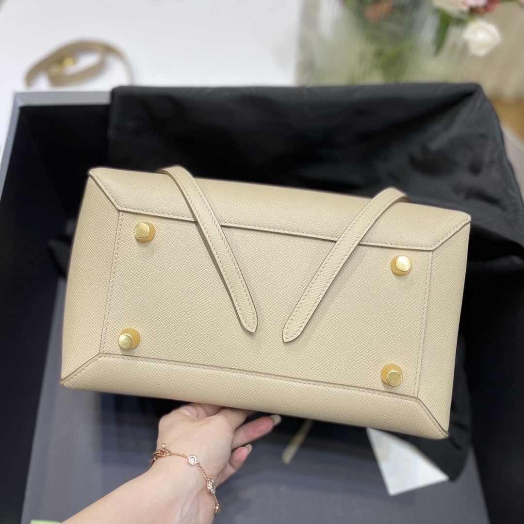 BELT迷你粒面牛皮革手袋。BELT MINI迷你刺绣手袋,附1个皮革手柄,1条可拆卸肩带,背面外设1个拉链口袋。这款手袋具备两种闭合方式:顶部翻盖和拉链。