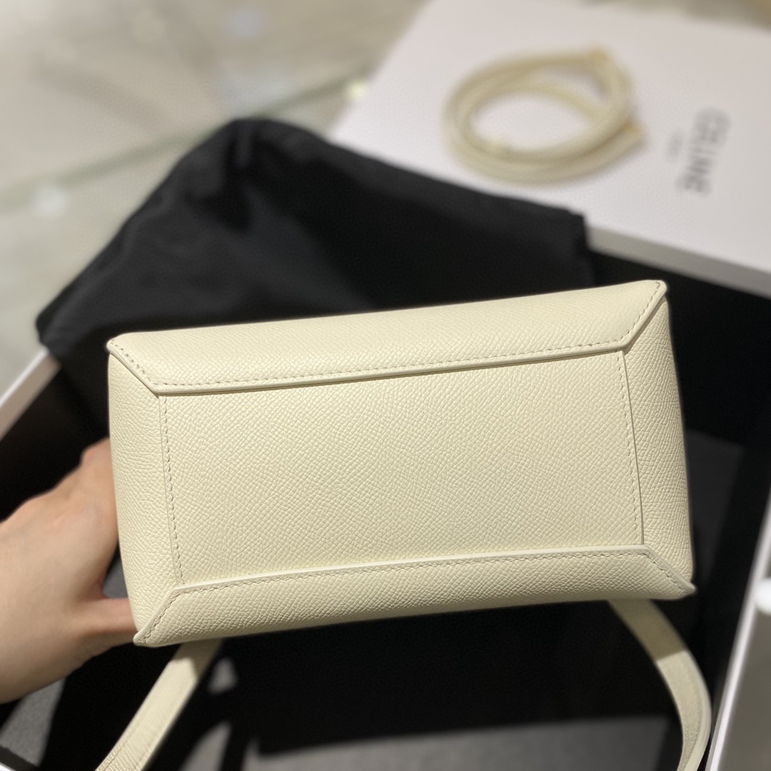 CelineBELT NANOe 思琳牛皮革手袋奶油白189003ZVA.31AN。BELT NANO粒面牛皮革手袋。BELT NANO刺绣手袋,附1个皮革手柄,1条可拆卸及可调节肩带。这款手袋具备两种闭合方式:顶部翻盖和拉链。8 X 8 X 4英寸(20 X 20 X 10厘米)