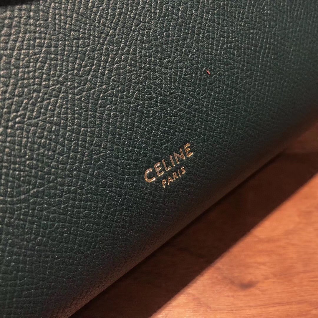 CelineBELT NANOe 思琳牛皮革手袋亚马逊绿189003ZVA.31AN。BELT NANO粒面牛皮革手袋。BELT NANO刺绣手袋,附1个皮革手柄,1条可拆卸及可调节肩带。这款手袋具备两种闭合方式:顶部翻盖和拉链。8 X 8 X 4英寸(20 X 20 X 10厘米)