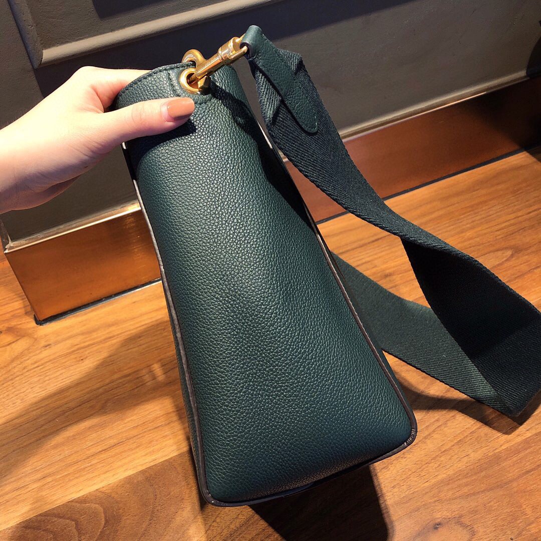 SANGLE BUCKET 小号柔软粒面牛皮革桶包、亚马逊绿。7 X 10 X 5英寸(18 X 25 X 12厘米)。牛皮革。衬里 : 牛皮革/织物