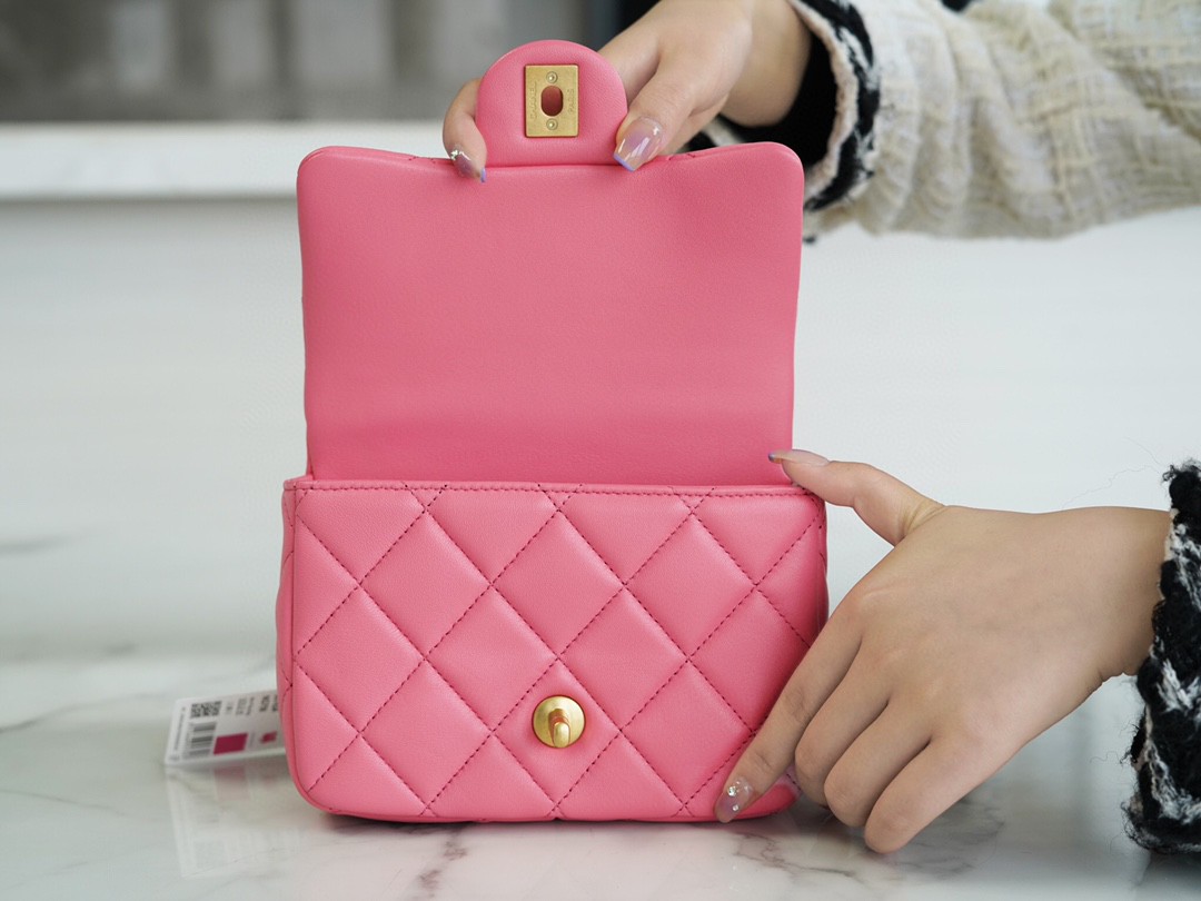 𝗖𝗛𝗔𝗡𝗘𝗟香奈儿口盖包2022珐琅扣方胖子 粉色香奈儿女式包包。𝗖𝗛𝗔𝗡𝗘𝗟 𝟐𝟐𝗣珐琅扣方胖子 粉色。『方框开料部』小羊皮#在经典的CF款式上搭配了珐琅扣小吊坠作为点缀显得更加的灵动精致,巧妙搭配起来可以洋气到爆喔~多种风格背法,可 ❶斜挎 ❷单肩 ❸手拎 ❹腋下包 哪种Style更让你心喜呢❓