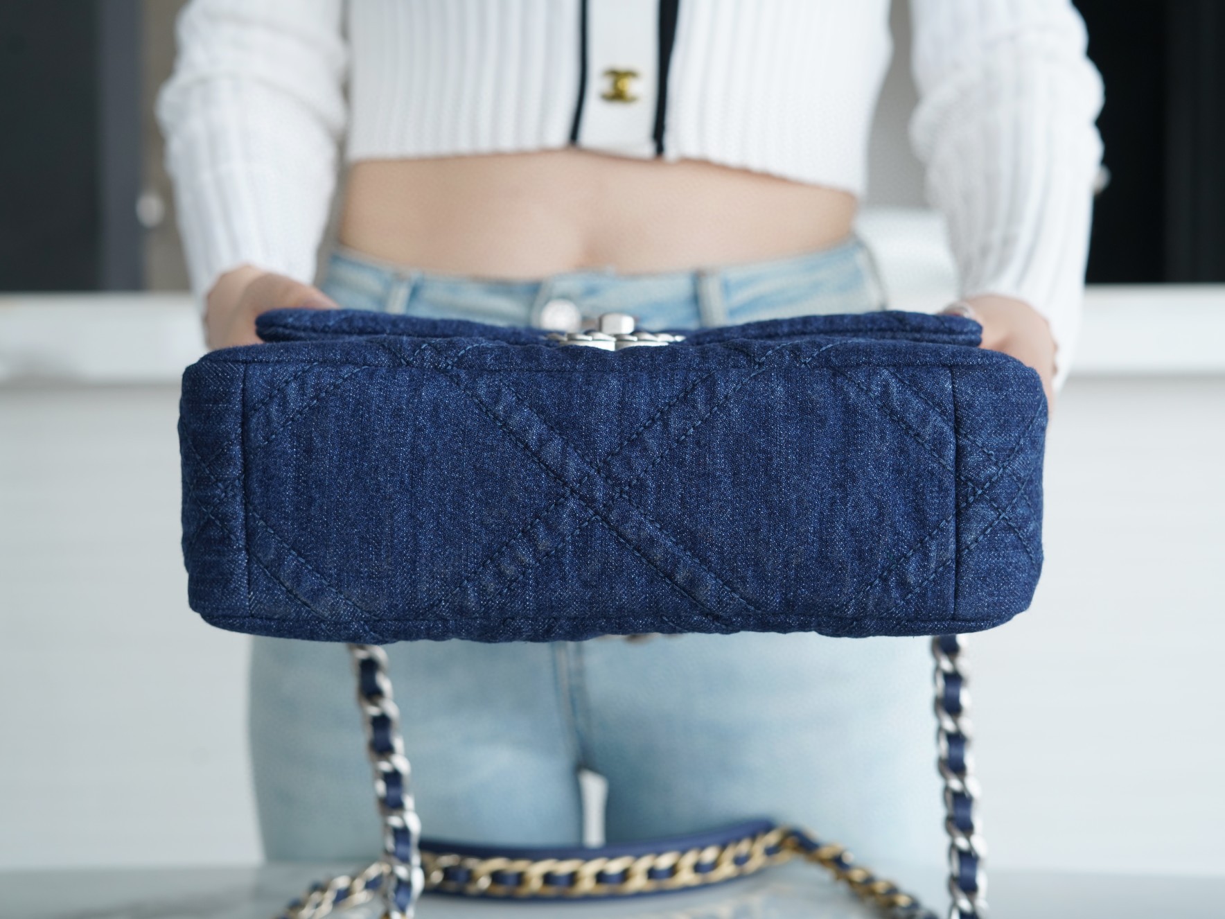 【正品预售】𝗖𝗛𝗔𝗡𝗘𝗟 𝟮𝟮𝗣深色牛仔 小号。Chanel牛仔系列一直都是属于金字塔顶端的存在,时髦又随意搭配凹造型,为干练形象多加一份优雅和活力。全新银扣双c点缀亮眼造型,轻松诠释百搭时尚,为你打包整个春日