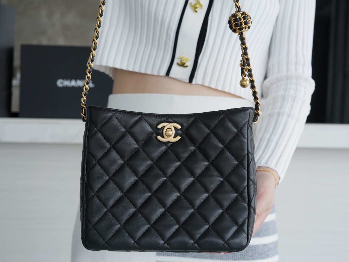 𝗖𝗛𝗔𝗡𝗘𝗟 2022金球嬉皮包香奈儿嬉皮包价格官网。【正品实拍】𝗖𝗛𝗔𝗡𝗘𝗟 2022金球嬉皮包。以柔韧细腻的羊皮打造,经典菱格纹设计,皮穿金属链条⛓️搭配“核桃”小金球,可随意调节长度,容量超nice,日常出行放的全都能放得下,集通勤、实用与时髦于一体!