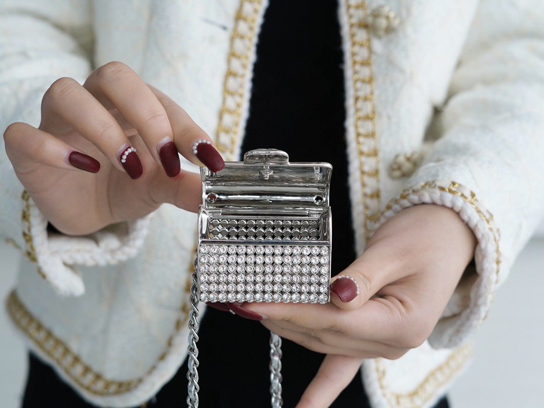 chanel 2022水钻金属项链包。超级迷你的一个精致小可爱,流光溢彩的水钻镶嵌在小巧的金属包身,轻盈摆动,钻光璀璨非凡,演绎别样的春日优雅。时尚设计融合自然美学,与你开启一场浪漫之约💕