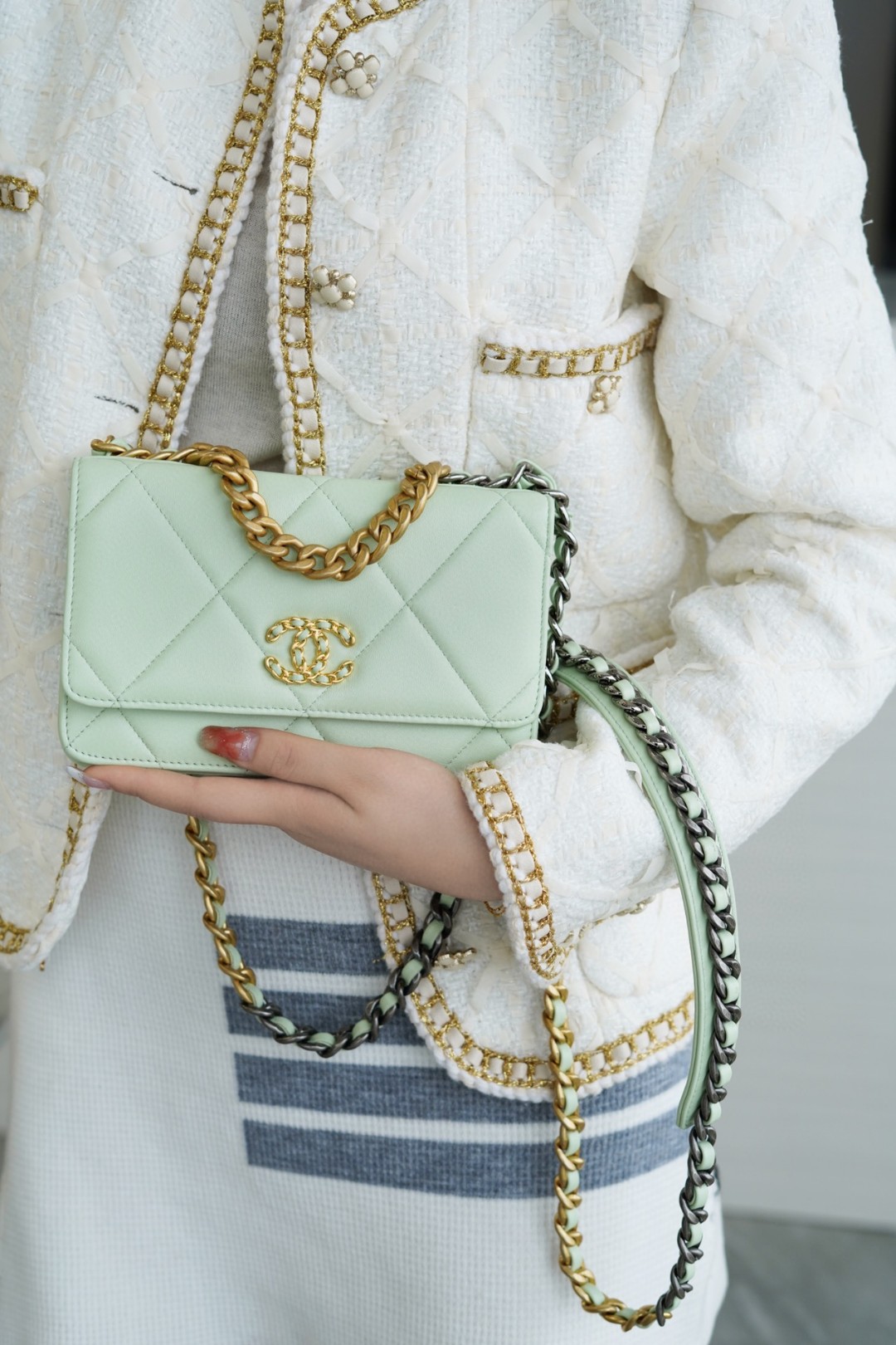 chanel 19系列 ,听说半个娱乐圈都在背的神包!老佛爷生前参与到的最后一款设计,肩带链条为沙金、古银和亮银三色金属拼接而成,大格子的设计和编织感的双C标志,复古中带点轻奢的𝐟𝐞𝐞𝐥,本季度最𝐡𝐨𝐭的系列(◍˃̶ᗜ˂̶◍)✩