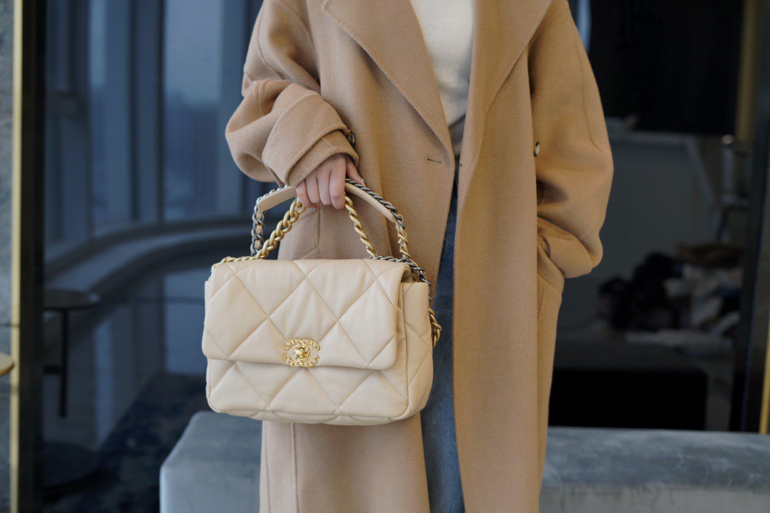 chanel 秋冬新品19bag 杏色中号官方网站香奈儿包包。秋冬新品19bag 杏色中号。外观无可置疑太好看了 大大的菱格 经典双clogo加上蓬松感的包型软软的好舒服,真是太特别了,加上这温柔的杏色完美的融合在一起,让人爱不释手