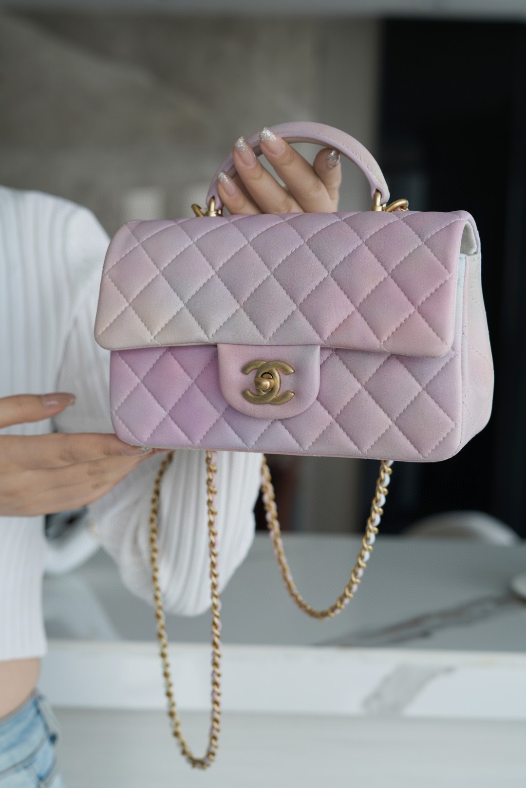 chanel 2022新款手提cf迷你渐变粉香奈儿口盖包配手柄。【正品实拍】chanel 2022新款手提cf迷你渐变粉。这款𝑴𝒊𝒏𝒊 𝒄𝒇 𝒕𝒐𝒑 𝒉𝒂𝒏𝒅𝒍𝒆被称为香奈儿22P包中之王!𝑀𝑖𝑛𝑖与𝐶𝑜𝑐𝑜 ℎ𝑎𝑛𝑑𝑙𝑒的结合体,经典与端庄,包包整体很有质感。这一季颜色简直绝了哇一眼瞬间沦陷💕摆在那都散发着迷人的光芒,充满夏日活力。