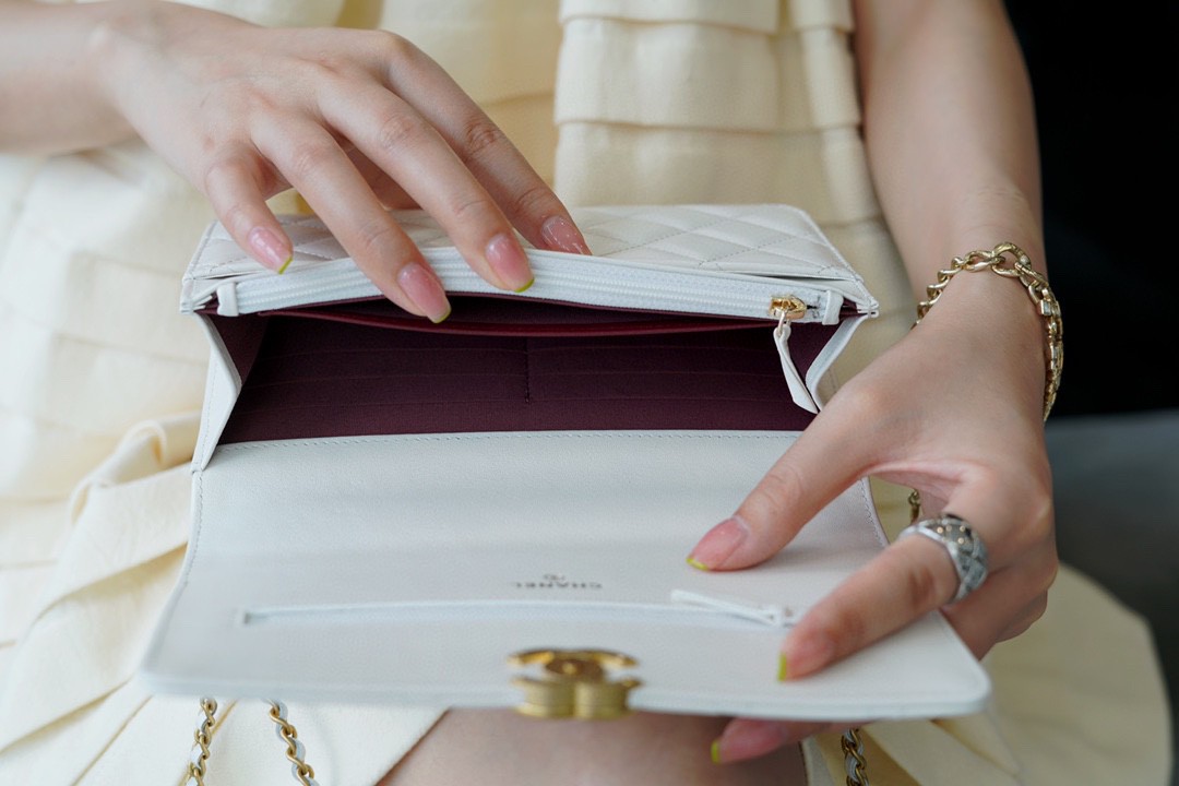 chanel高级手工坊双金珠woc白色香奈儿双金珠woc专柜有吗。采用平滑的光面小牛皮手感细腻且有光泽感 搭配做旧五金,轻松塑造出复古优雅又不失时髦的𝒇𝒆𝒆𝒍 每一个细节都散发着精致感,低调而高级说的就是它了