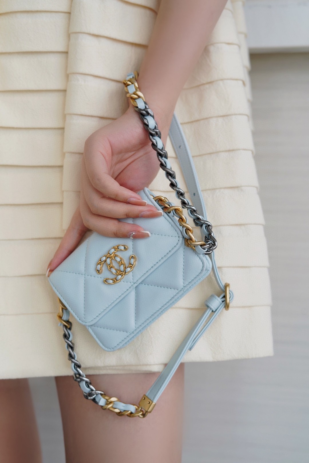 【正品预告】秋冬新款 迷你小腰包。这一季又主打玛卡龙色啦~奶油奶油的天蓝色,简直不要太治愈啦〰️最新的19𝒷𝒶ℊ系列迷你腰包,小小一只但具备了19的所有经典元素,超级迷你可爱☾可用来做腰包 斜挎和叠背