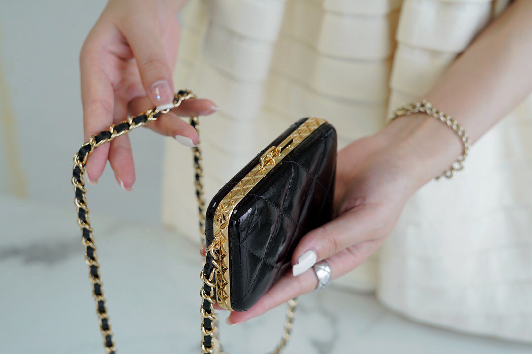 【正品实拍】𝖢𝗁𝖺𝗇𝖾𝗅 高级手工坊 mini晚宴包。采用复古羊漆皮#配金色五金简约耐看经典中又透露一丝别致❥增添了高级的韵味☄️