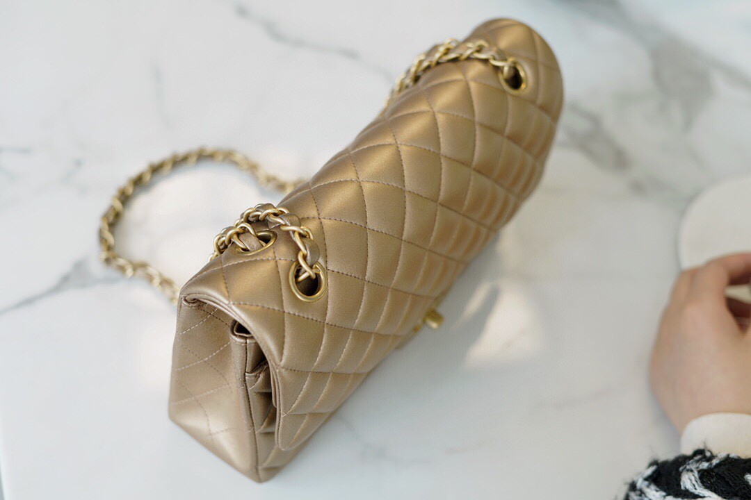 Britain chanel CF classic flap太空金香奈兒官網中國官方網。意大利《GR》原產羊皮。金色復古精致又好搭配。拿在手上仿佛回到了上個世紀的法式舊時光