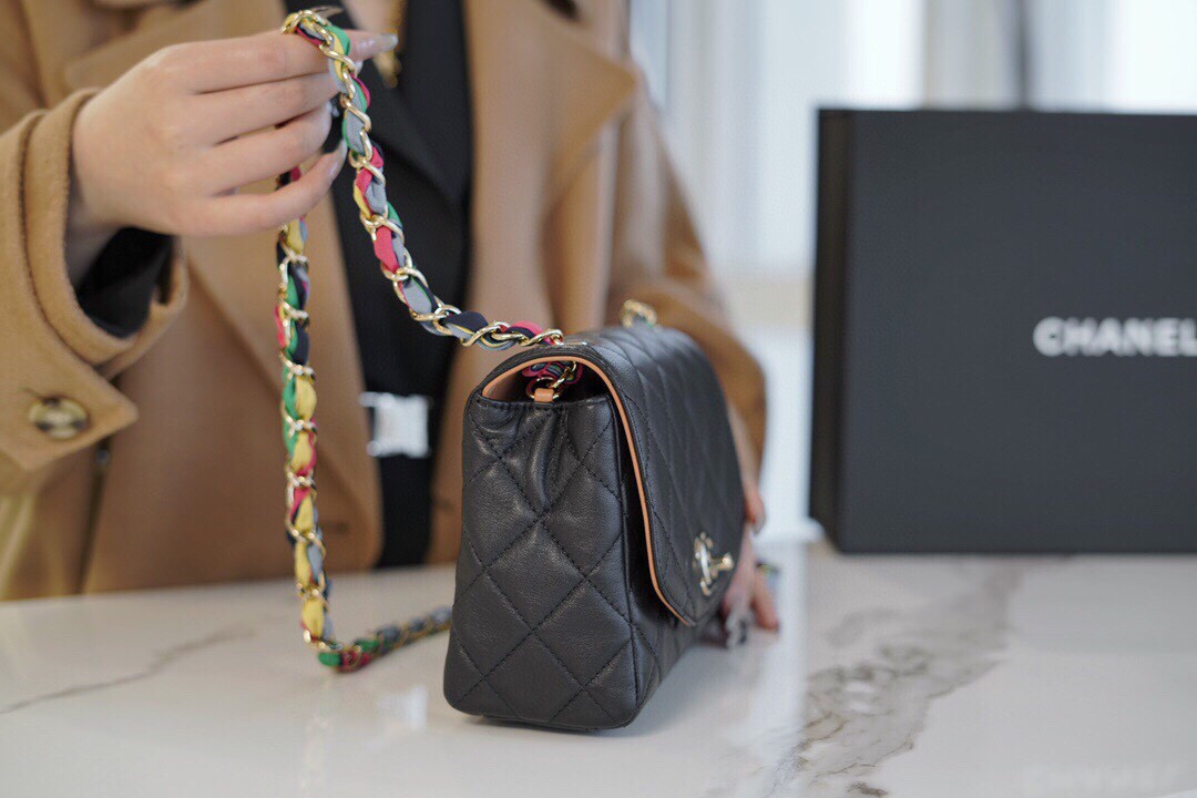 『正品實拍預告』春夏新品 彩虹 口蓋包 。 這一季的香奶奶絕對是吃了彩虹糖吼吼吼看!!雙C 🅛🅞🅖🅞扣採用了琺瑯ོ材質做成相同配色,鏈條採用彩色編織而成像一道道彩虹寓意新的一年驚喜連連。