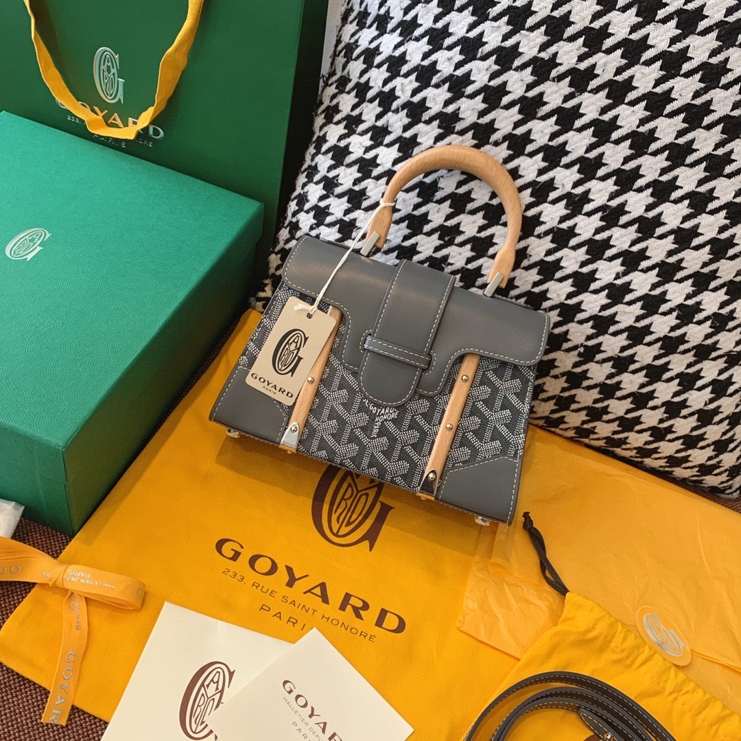 灰色Goyard戈雅 新款硬版mini西貢包 Saigon小號單肩斜挎包21×9×14cm專櫃一包難過手工出品 物超所值 配好圖片所有包裝。