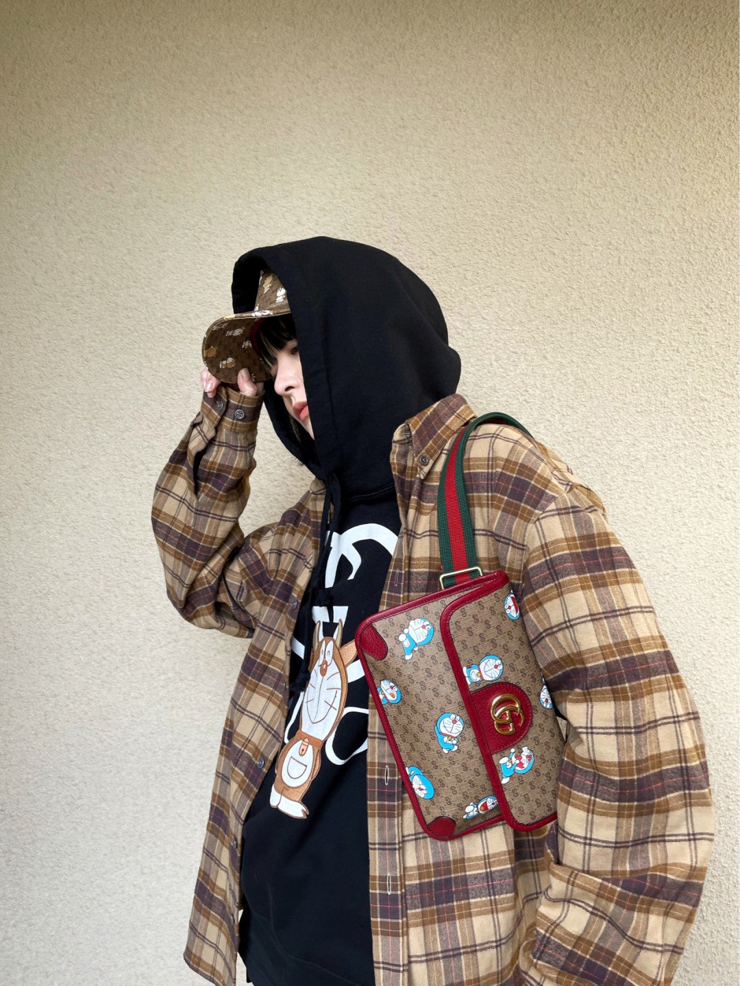 品牌包包gucci(古奇)Deraemon 哆啦A梦联名系列腰包小白同款上身图647817小白白哥同款,