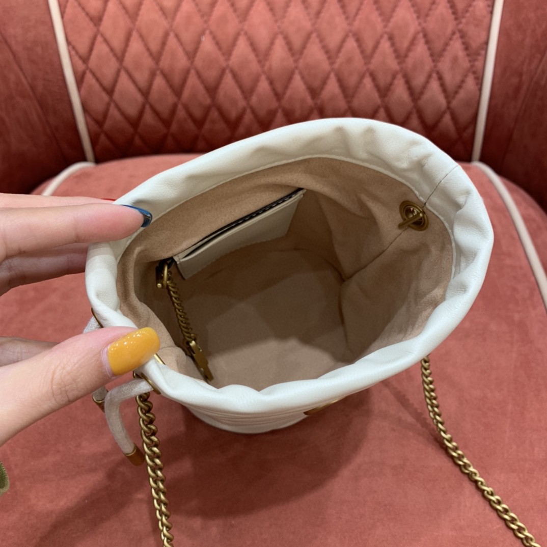 古奇官网中文官网GG Marmont水桶包武汉江汉区575163 DTDRT 9022 GG Marmont 系列迷你水桶包 款号575163 DTDRT 9022 白色绗缝皮革材质的迷你水桶包,背面饰以心形细节。双 G 造型配件是 GG Marmont 系列的标志性元素,其灵感源自 20世纪70 年代 Gucci 典藏腰带搭扣设计,经现代美学演绎后成为品牌的象征之一。金色调的链式肩带,搭配富有活力的设计,打造多样化的造型。白色绗缝 V 型设计皮革材质,背面饰以心形细节古金色调配件麂皮质感超细纤维衬里