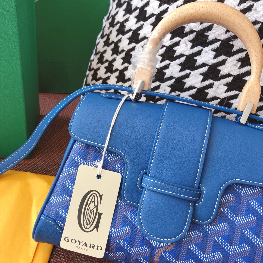 電光藍色Goyard戈雅 全面升級高版本mini 西貢包 21cm帆佈面料帶著清香味彩用環保原材料做工精致 ️老花紋也特別耐看~配專櫃全套綠色原包裝