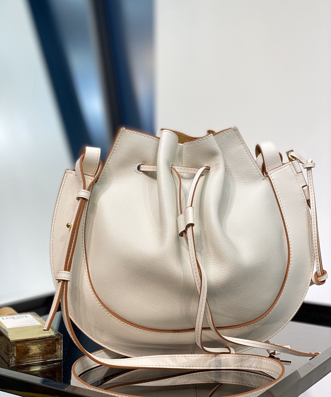 頂部以抽繩開合 側邊金屬插銷延續暢銷款。Gate 手袋的標誌性設計。圓鼓鼓的包型看起來輕鬆俏皮。