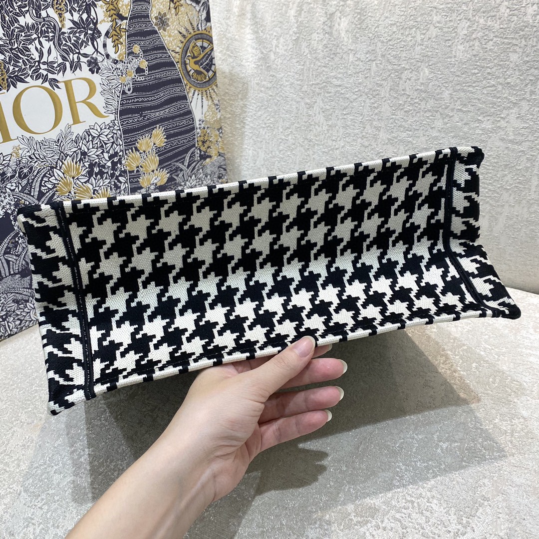 Dior BOOK TOTE最新千鸟格系列手袋M1296ZTQT_M911成都金牛区 中号 BOOK TOTE 手袋黑色千鸟格纹刺绣