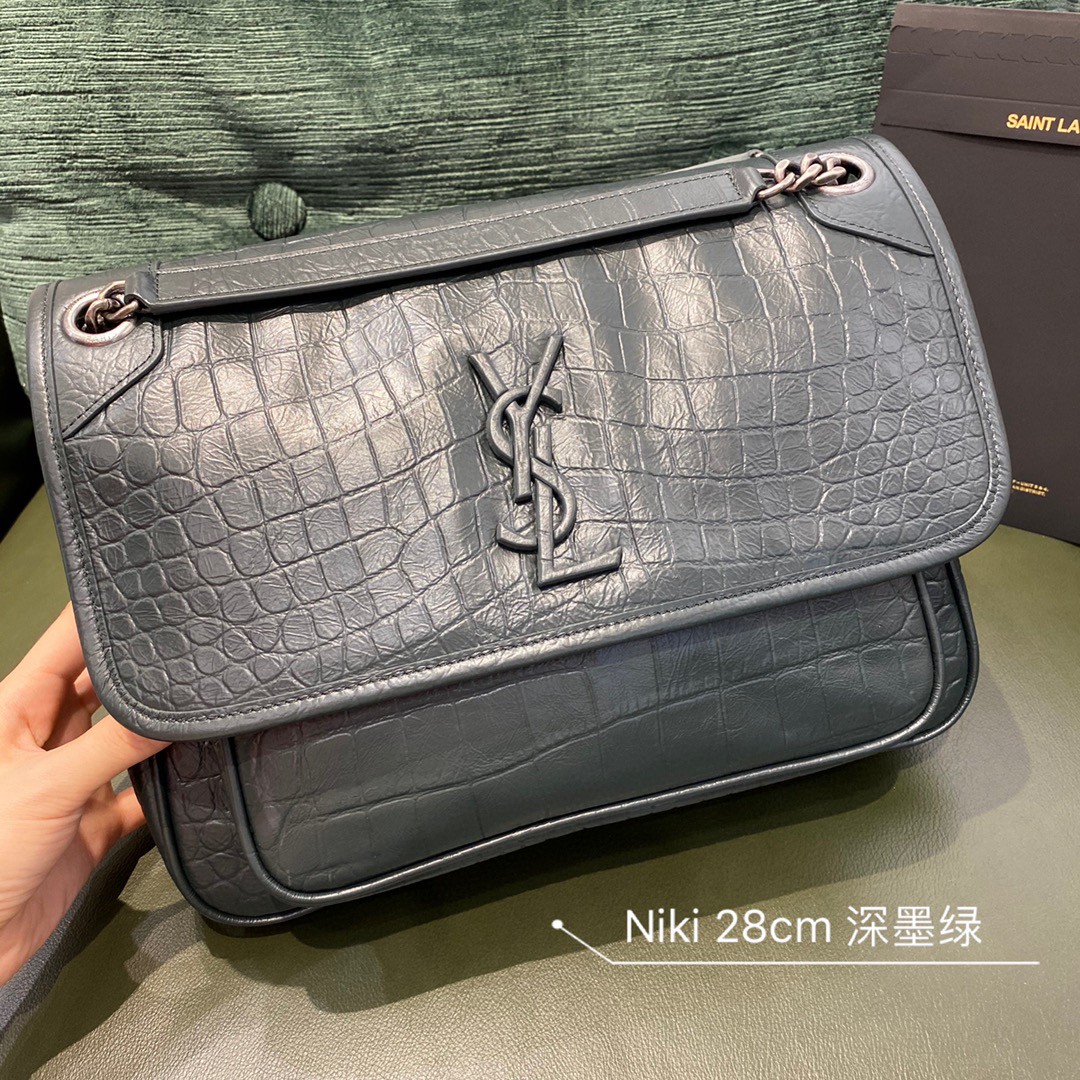 #𝒏𝒊𝒌𝒊 𝒎𝒆𝒅𝒊𝒖𝒎 𝟮𝟴𝒄𝒎#【鱷魚紋原廠皮新版本】斷貨王NIKI又出新花樣!墨綠色中光鱷魚紋搭配銀色五金,酷感十足!跟正品完全一摸一樣的紋路手感,直接秒殺市面上所有不對版的貨!立體的中光鱷魚紋手感軟糯舒適,五金使用鱷魚紋路皮包著,Niki的標誌性logo,羅緞內裏,磁性四合扣,隔層多,實用率超級高!中光鱷魚紋路耐磨不易出現劃痕,超級容易打理的必入款!實用率超高!輕便帥氣!