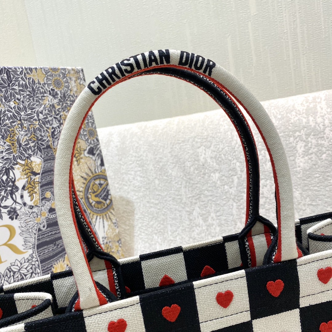 迪奥Dior Tote最新七夕系列包包 Tote最新七夕系列,爱的礼物,经典的黑白格,搭配迷你红色爱心,让整个包非常亮眼,超大容量的设计 ,凹造型神器🏻,时尚精必入款,超级复古的,容量也是妥妥的,各种杂物往里面丢就好了