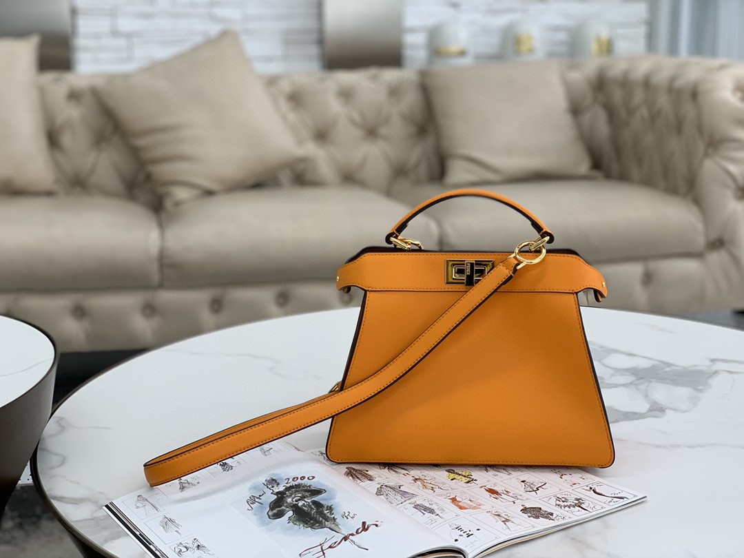 Peekaboo ISeeU 手袋,包身是純色 兩側精致的經典扣很別致,非常優雅知性,日常通勤都可以用,一包駕馭多種風格 摩登風情 ,幹練又不失優雅!顏色:橘色 尺寸:27cm.