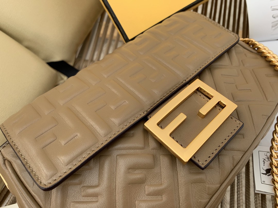 Baguette 最經典的包款,如今以獨特的全新設計帶來別樣的驚喜,標誌性的FF 手袋採用翻蓋設計,內襯配有拉鏈袋,可手拎包可斜挎,簡約卻自帶氣場 隨性自由卻優雅十足。尺寸 :26cm .
