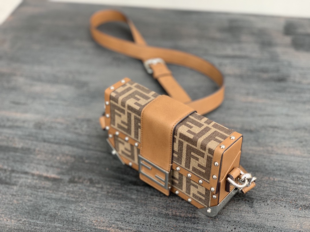 BAGUETTE TRUNK 限量老花盒子,硬式手袋採用方形翻蓋設計,配有F磁扣開合,肩帶可調節. 可拆卸,包包簡約中散發出高級的本質,復古經典的設計永遠都不會過時,可謂點睛之筆 可鹽可甜可A可颯,各種造型都能輕易駕馭,超百搭!尺寸:19cm