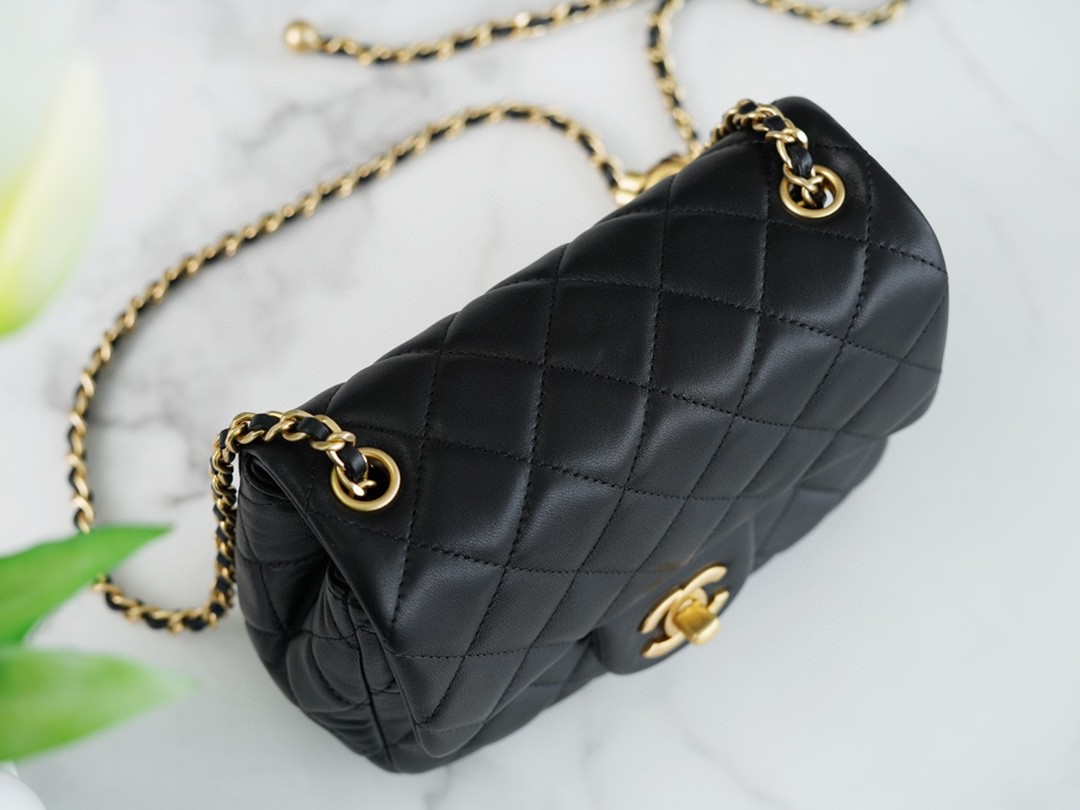 chanel 22s 編織金球𝐂𝐅方胖子 正品皮 黑色【方框開料部】原廠小羊皮 以柔韌細膩的羊皮打造,經典菱格紋設計,皮穿金屬鏈條⛓️搭配“核桃”小金球,整顆金球換成穿皮編織元素,而編織更顯工藝,鏈條可隨意調節長度,金色內裏高級感滿滿,是我心中的夢中情包沒錯了