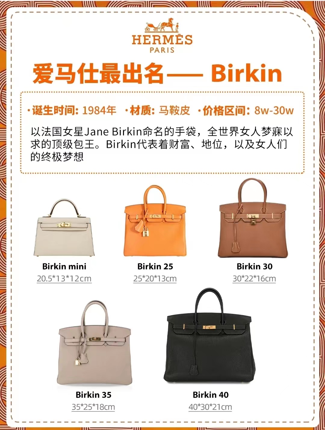 ①Birkin—最出名還有愛包人士不知道愛馬仕的鉑金包嘛?每一只Birkin都要耗費工匠48小時全手工打造,材質細膩舒適!靈感來自法國女星Jane Birkin ~