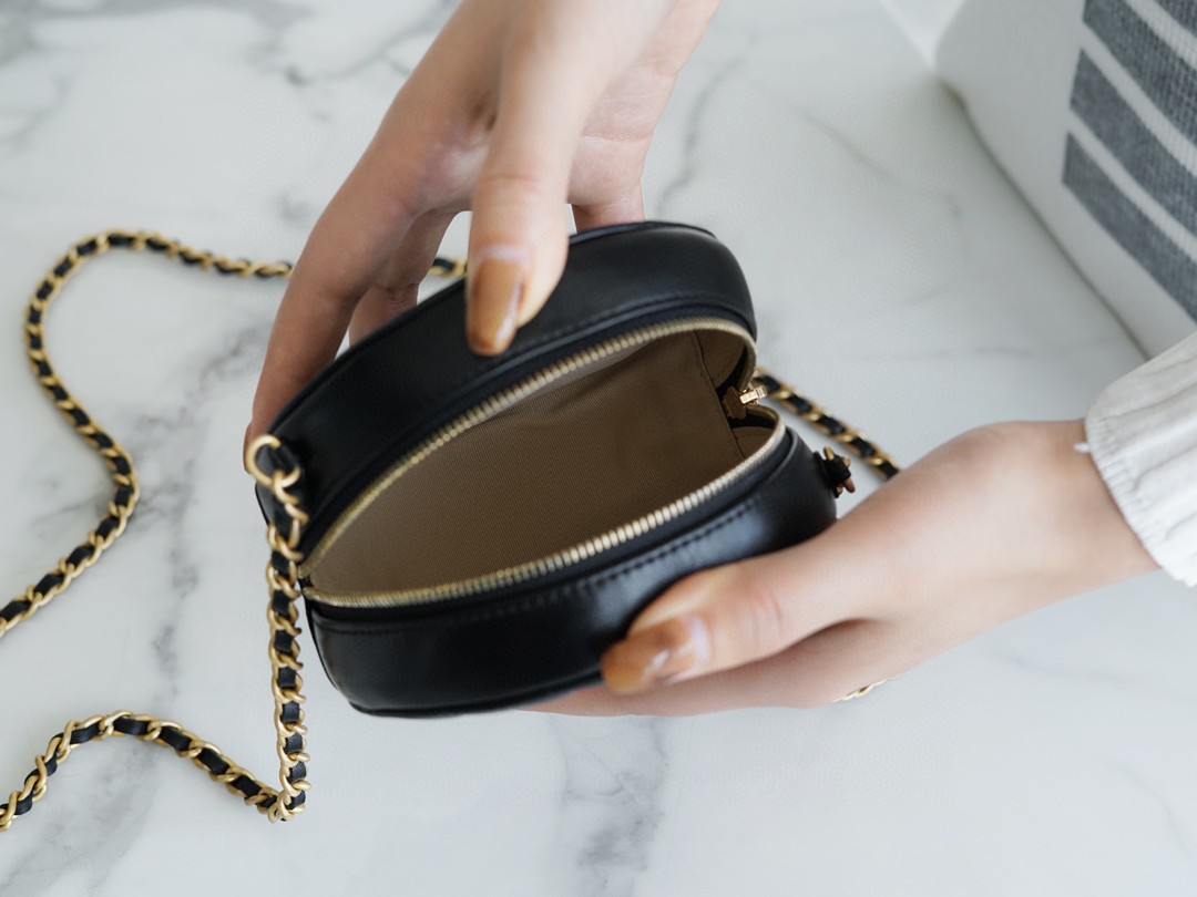 金屬球繫列小圓餅 黑色。中式簡約,優雅,兼具隨性風格和實用風格。圓袋形設計將女性的柔美與包包的柔軟度相結合,伴妳從容駕馭各種工作通勤的場合。