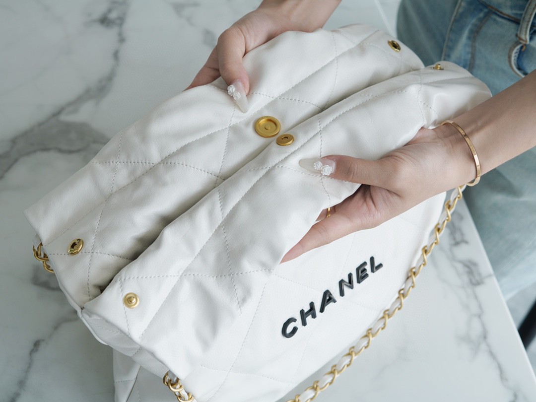 chanel 22P春夏新款 𝟐𝟐手袋 小號白色黑扣。 真正的純A 一級小牛皮皮質既柔軟又耐磨,兩者兼具