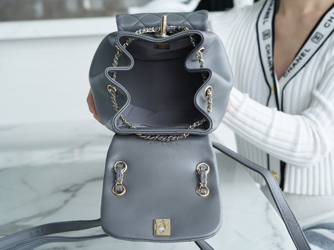 chanel新款duma雙肩包 羊皮 大象灰。《方框》意大利原產小羊皮,質地手感視覺感都很好🎗搭配香檳金五金,雙肩帶有調節孔可調節,獨特的設計感和滿分的實用性走南闖北都不怕!