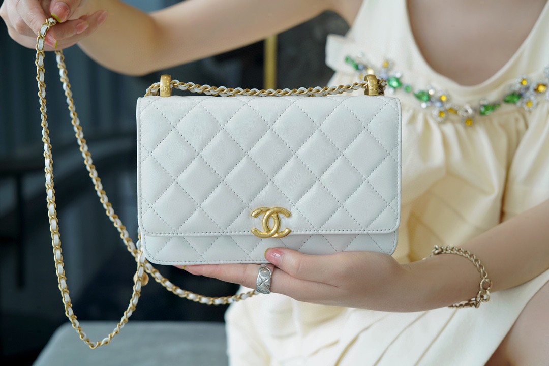 高級手工坊 雙金珠 woc 白色。採用平滑的光面小牛皮手感細膩且有光澤感 搭配做舊五金,輕鬆塑造出復古優雅又不失時髦的𝒇𝒆𝒆𝒍 每一個細節都散發著精致感,低調而高級說的就是它了