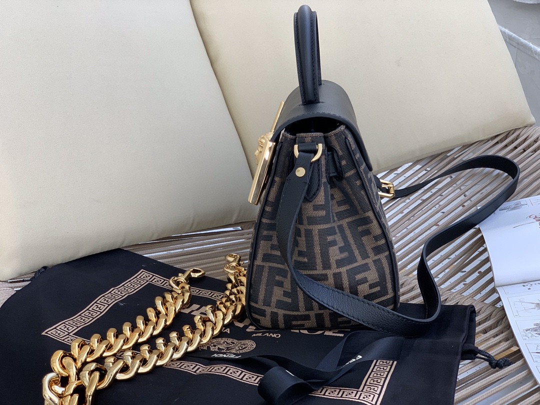 F̶e̶n̶d̶i̶ ̶ by Versace 聯名首發- .F endace La Medusa 繫列手袋設計,以繁復印花點綴 包身中央飾有 Versace 美杜莎闆飾分外吸睛,彰顯經典永恆魅力 優雅廓形飾以皮質手柄 皮革肩帶和可替換鏈條 隨性出行 酷颯風格拉滿。