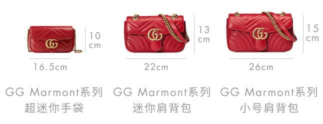 GG Marmont系列小号链带肩背包采用颇具结构感的柔软造型和超大号翻盖封口,配以GG金属配件。可滑动链条肩带有多种背法,可在肩背和手提之间自由转换。采用波浪纹绗缝皮革,背面配以 GG 标志。