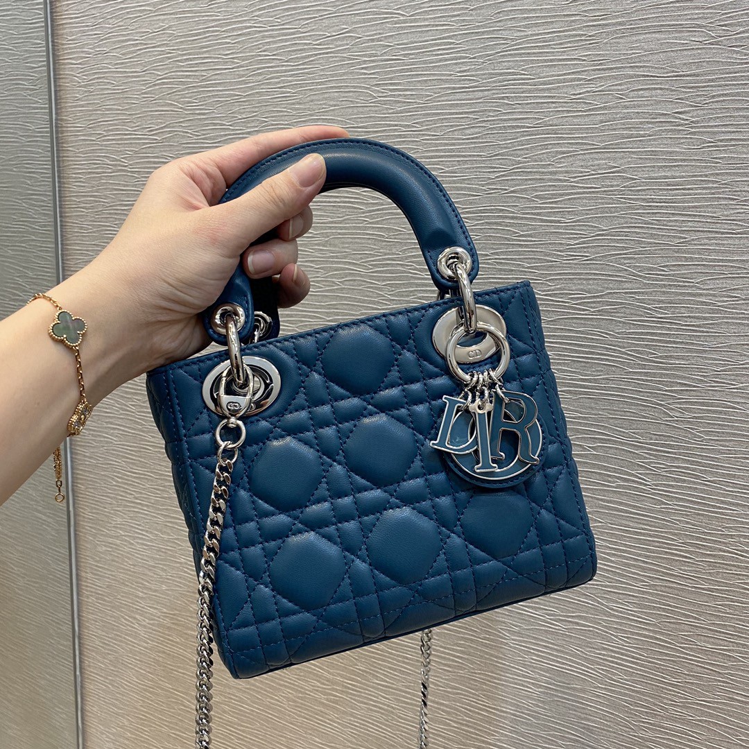 迪奥迷你手袋Dior LADY最新春夏系列M0505OCAL_M900 迷你 LADY DIOR 手袋 编号: M0505OCAL_M900 这款 Lady Dior 手袋集中体现了 Dior 对典雅和美丽的深刻洞见。时髦典雅的设计经久不衰。以藤格纹缉面线打造醒目的绗缝细节。饰以浅金色饰面金属“D.I.O.R.”吊饰,为精美的轮廓增添一分灵动。迷你款式,搭配可拆卸的链条肩带,可手提、肩背或斜挎,是晚装的理想伴侣。可拆卸链条肩带内部拉链口袋可随心搭配其他刺绣肩带内含防尘袋
