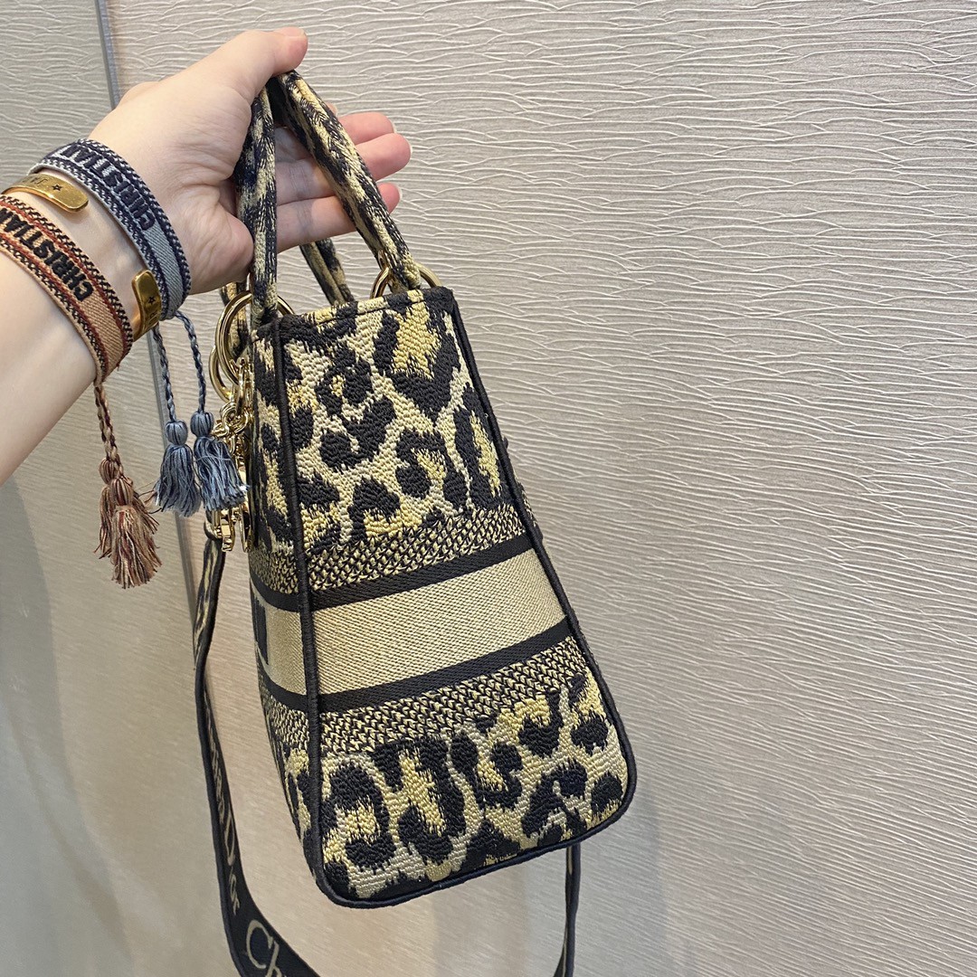 迪奥五格手袋Lady Dior豹纹系列M0565ORHM_M918 中号 LADY D-LITE 手袋 米色 Mizza 图案刺绣