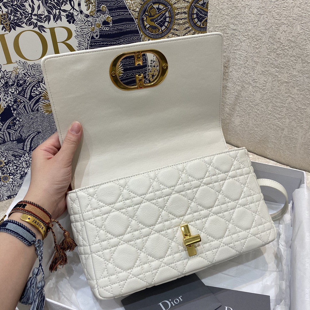 迪奥中号手袋DIOR CARO M9242UWHC_M35U 中号 DIOR CARO 手袋象牙色柔软牛皮革藤格纹