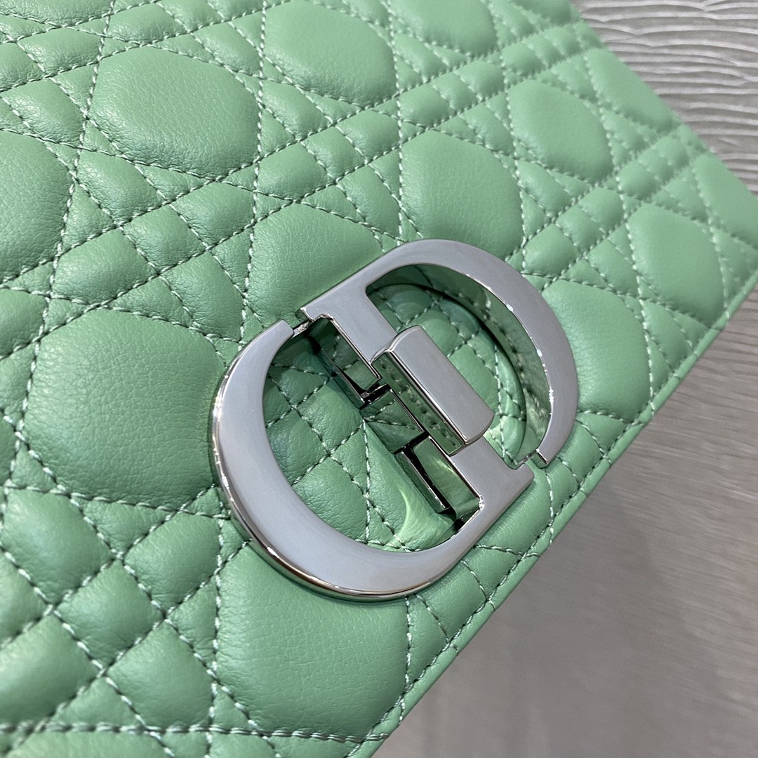 翻盖开合搭配旋钮式“CD”扣环背面“30 MONTAIGNE”压花标志可拆卸、可调节的“CD”链环肩带,搭配军装风格的“CHRISTIAN DIOR”搭扣