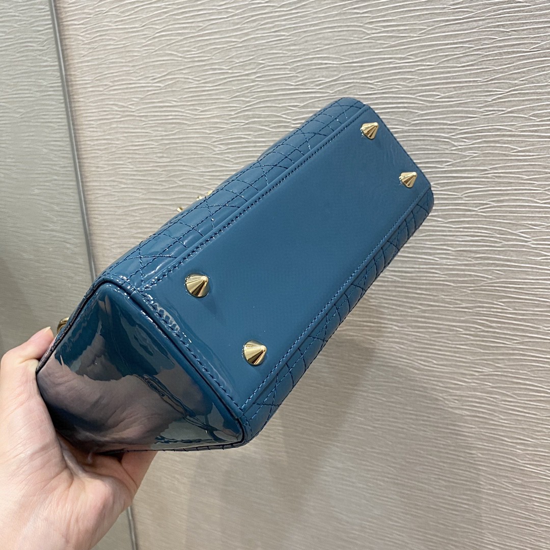 迪奥四格漆皮手袋LADY DIOR M0505OWCB_M71P 20CM LADY DIOR 手袋 海洋蓝漆皮牛皮革藤格纹