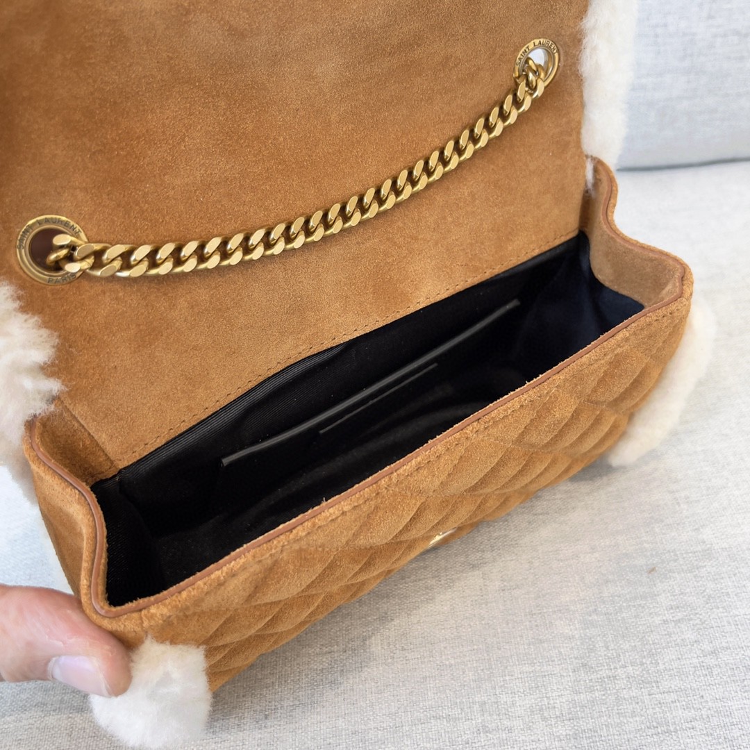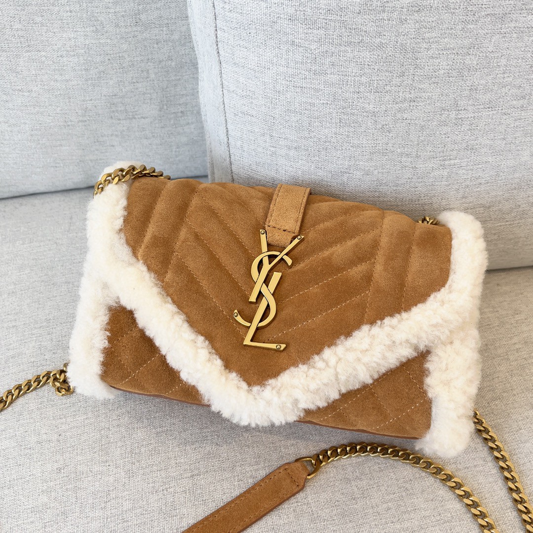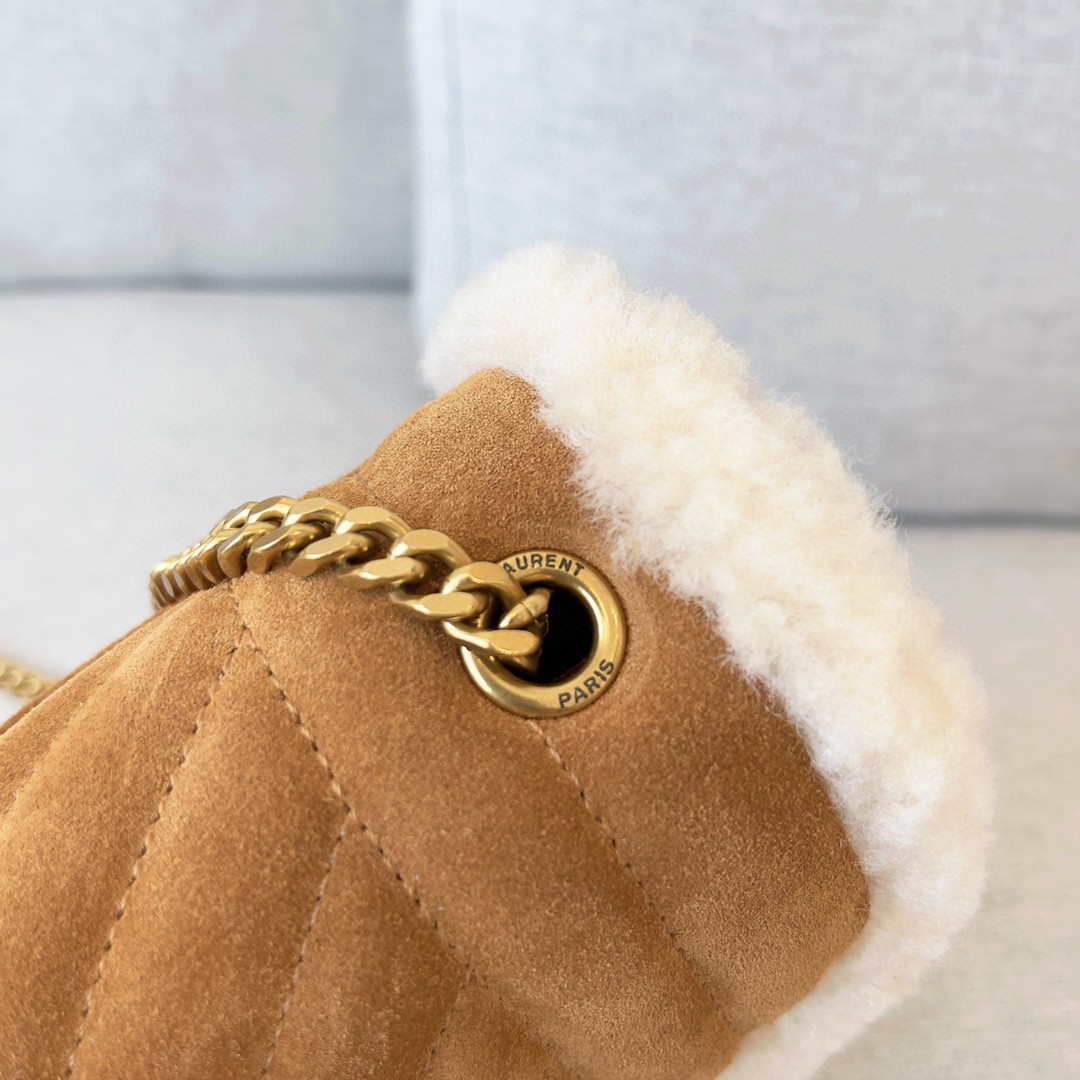 永恆經典的絎縫紋真皮信封包,V紋拼菱格紋路,搭配溫柔的駝色包身奶油色羊羔毛絨邊緣,保暖軟萌的質地特別治愈!