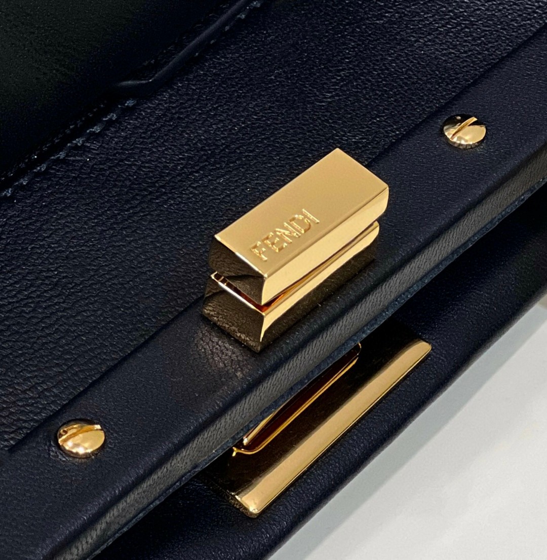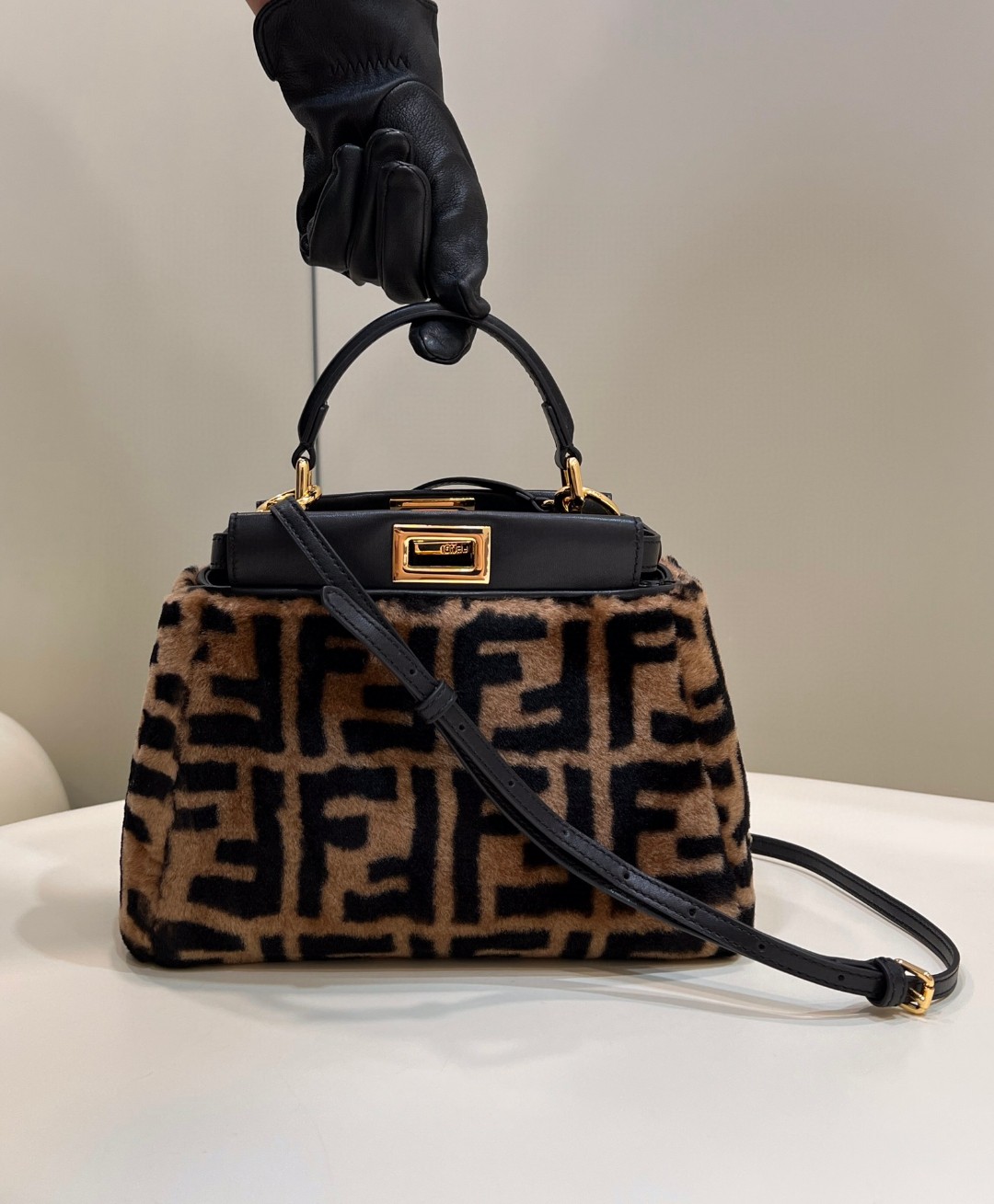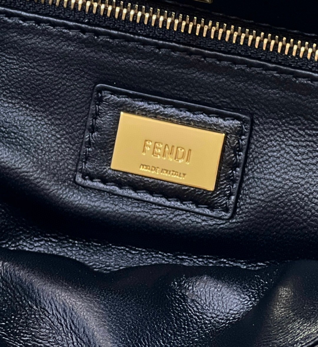 Fendi PEEKABOO新款 8205S 黑色納帕牛皮,印有棕色與黑色大型 FF 主題圖案,單手柄和可調整、可拆卸肩帶,較大容量。27*25*14cm全套包裝發票 寬肩帶另付款