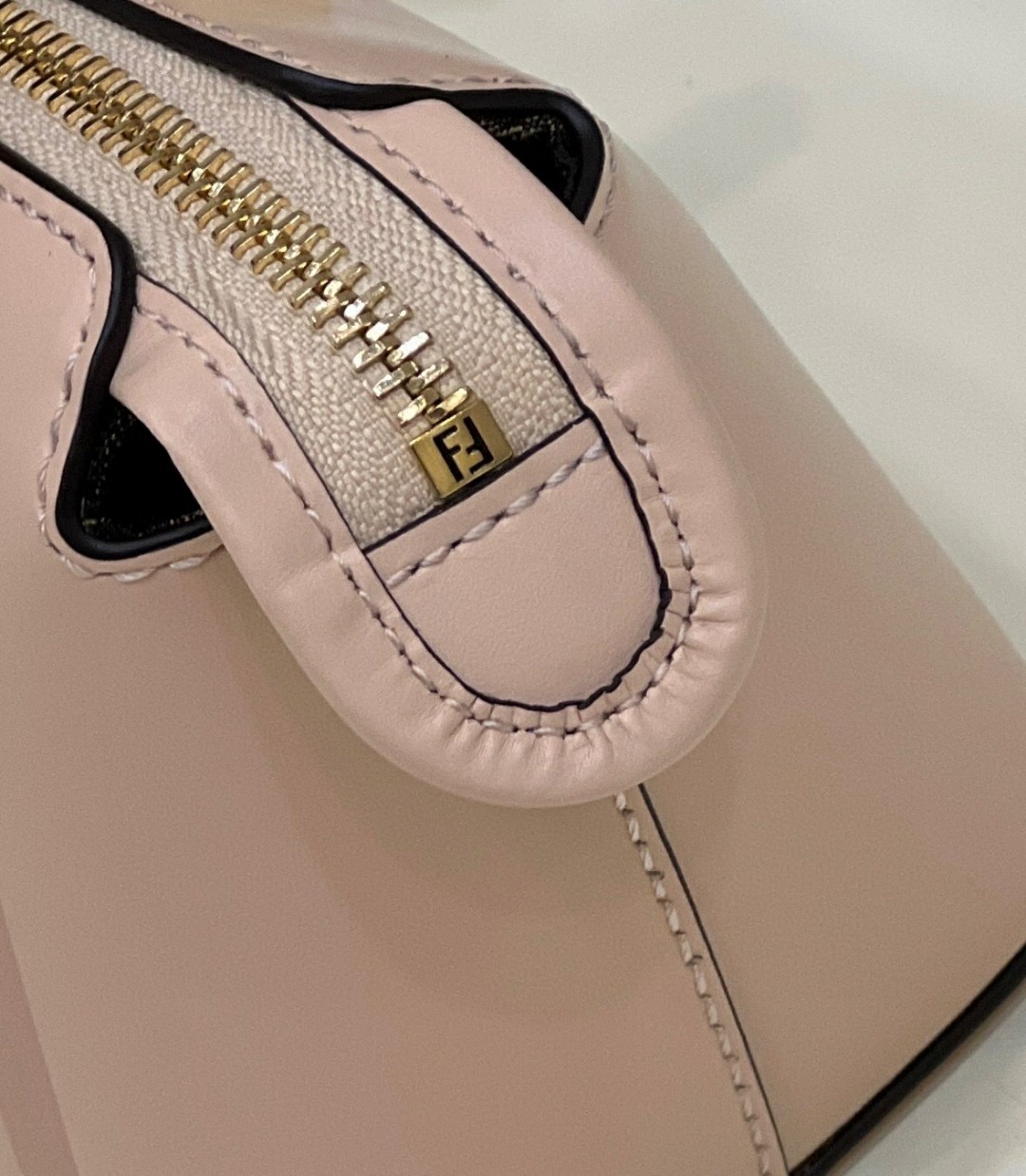 By The Way Boston迷妳手袋,小牛皮材質,手感巨好 還有印FENDI ROMA字樣和硬質和搭配有機玻璃提手,開合拉鏈 內部配有口袋容量也是很大~