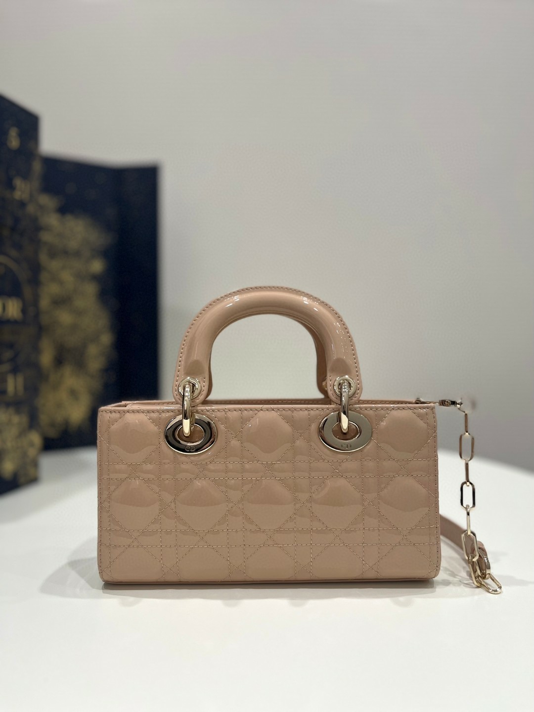 D-joy小號繫列,新出的尺寸更小巧,更顯得精致,大爆款的節奏,包包自帶兩條肩帶,多種背法,上身又美又颯,經典的菱格設計,搭配油亮的漆皮,優雅又時尚🌿