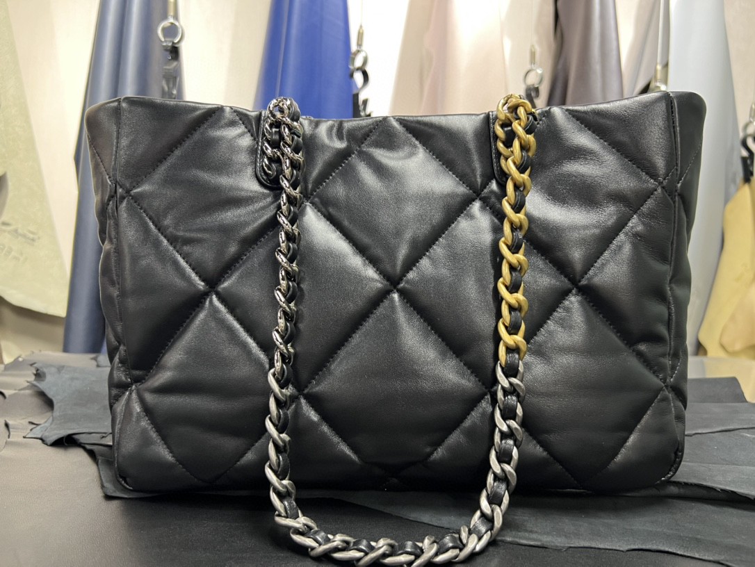 手感細膩軟乎,經典菱格紋設計與皮穿金屬的鏈條搭配,金色附帶的高級感,本季最經典黑金設計,集齊了19的全部元素,超級顯精致,軟糯糯的一個大包炒雞實用,解構經典包型,重塑潮流時尚,讓人眼前一亮,一眼萬年款。