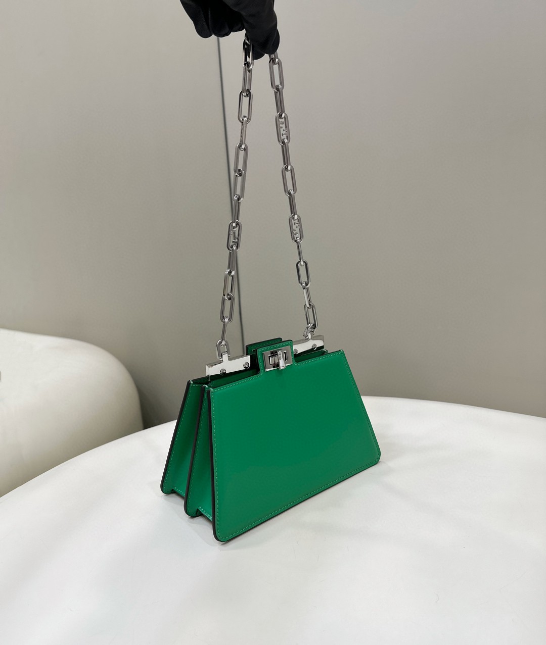 Peekaboo Cut Petite 全皮制作,這款設計破格立新的演繹Peekaboo,採用動人橫切設計,呈顯金屬橫桿及兩側經典牛角鎖,搭配綴有O‘Lock細節的鏈條,可手提亦可肩背