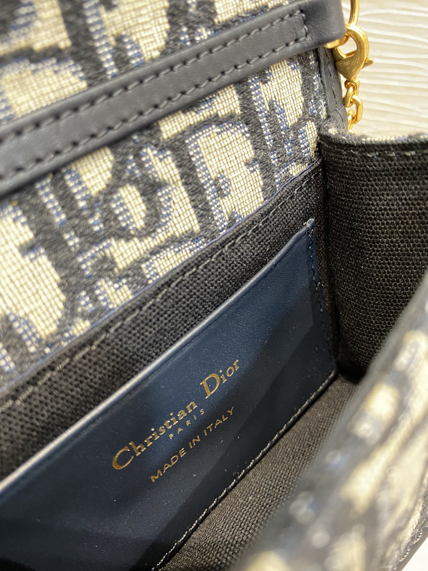 编号: S2105UTZQ_M928 这款 30 Montaigne Nano 手拿包是一件有着标志性造型的原创实用配饰。采用蓝色 Oblique 印花精心装饰,翻盖饰以“CD”标志。后侧设有扣环,可以穿于腰带系在腰间,搭配可拆卸链条肩带,也可斜挎。